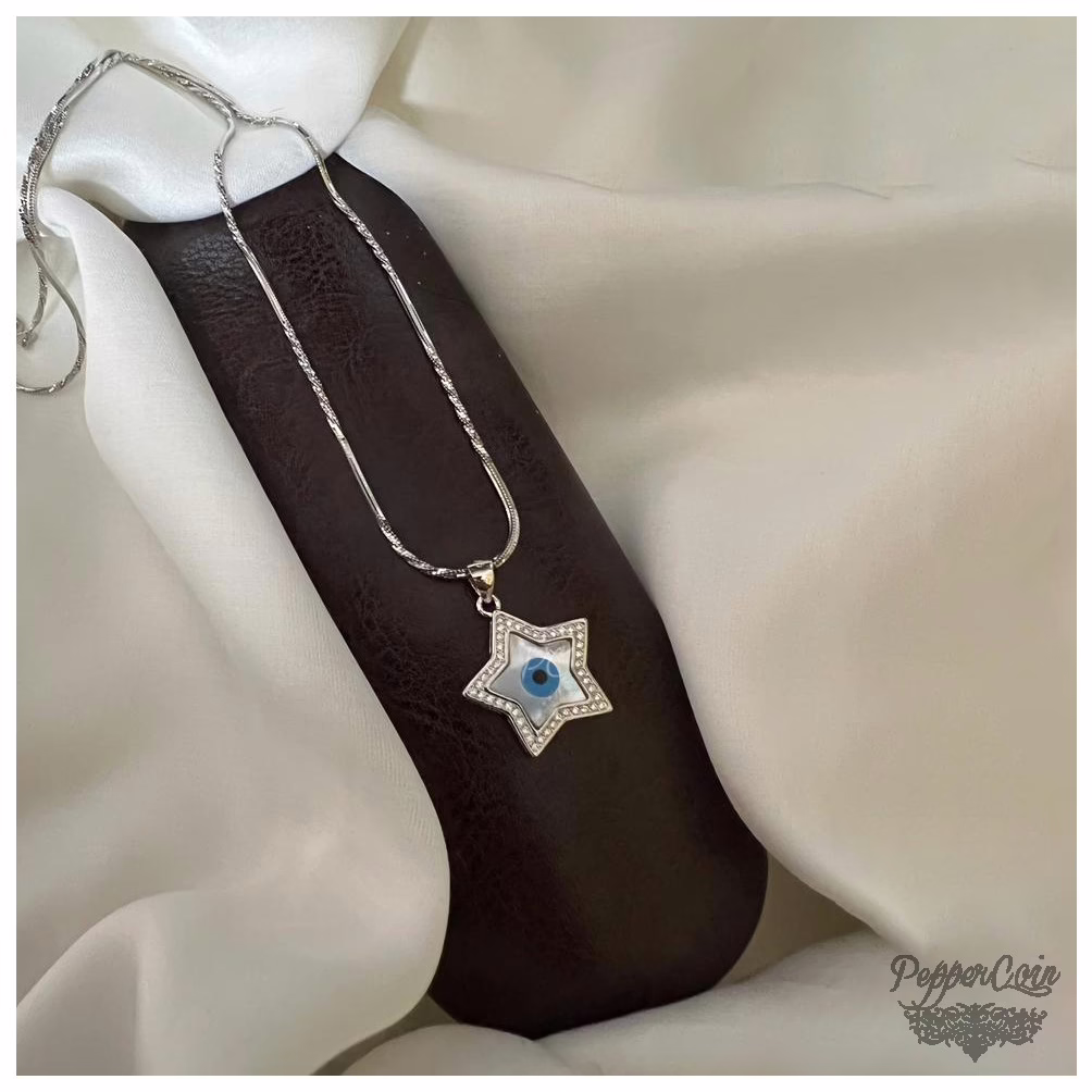 Mother of pearl evil eye silver neck chain with zircon comes with chain perfect for everyday wear.