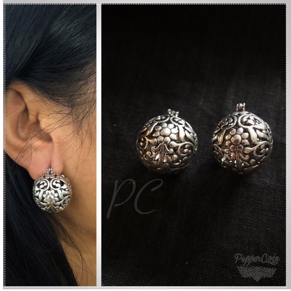Carved Silver ball earrings