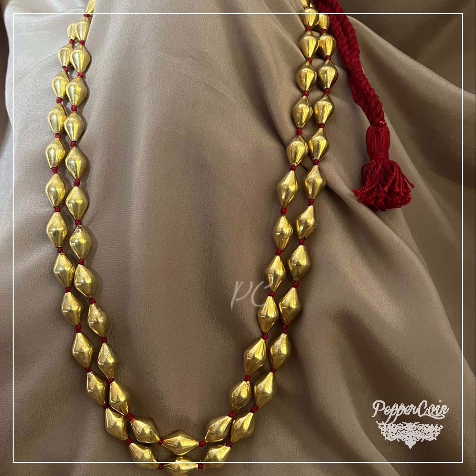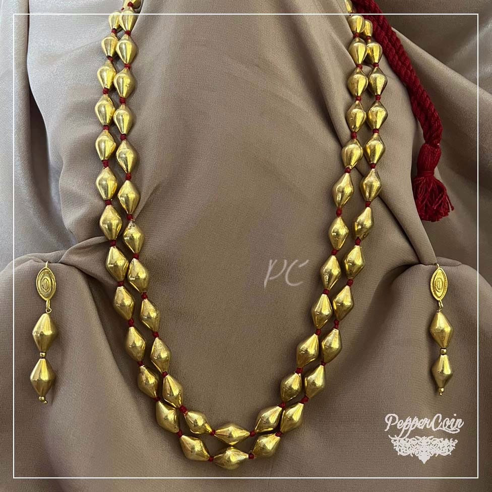 Two Line gold plated dholki wax beads, Silver Coated Neckpiece.