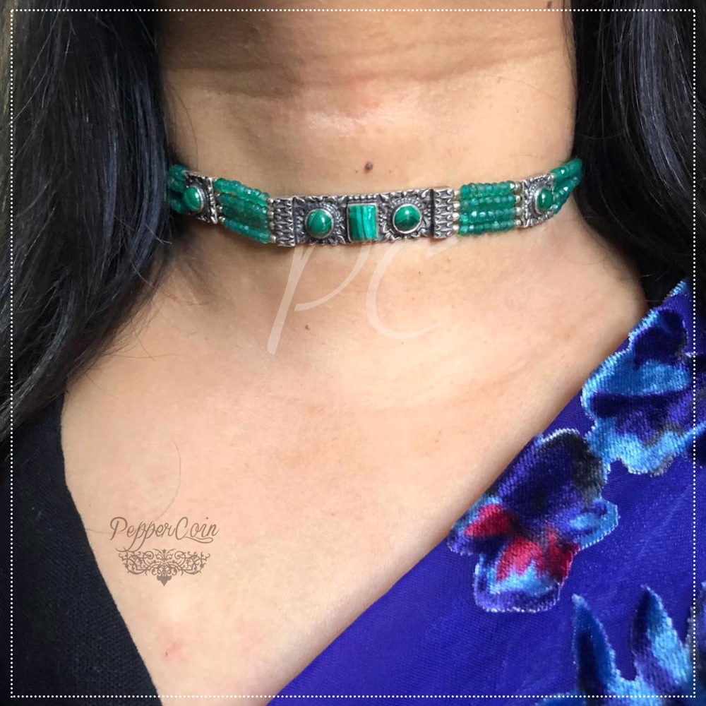 One of a kind Malachite and Faceted Green Onyx Choker.