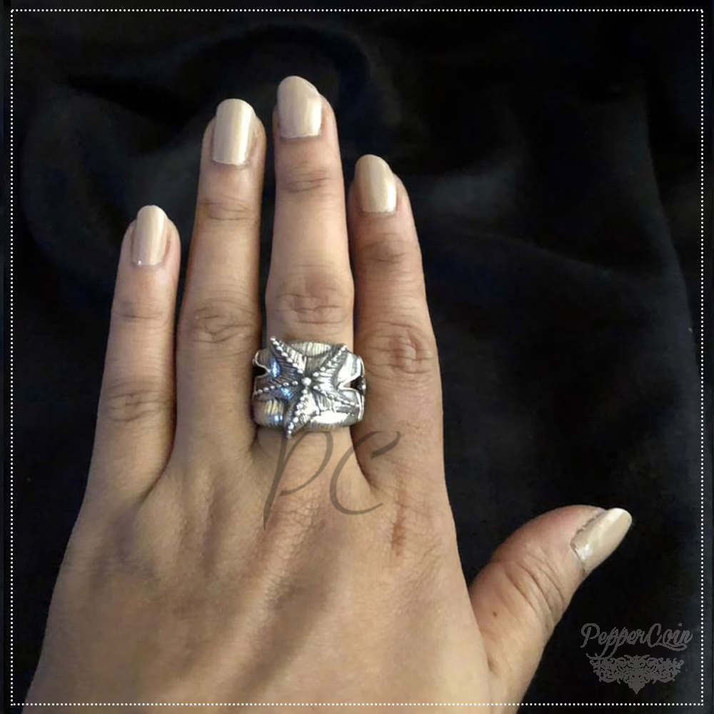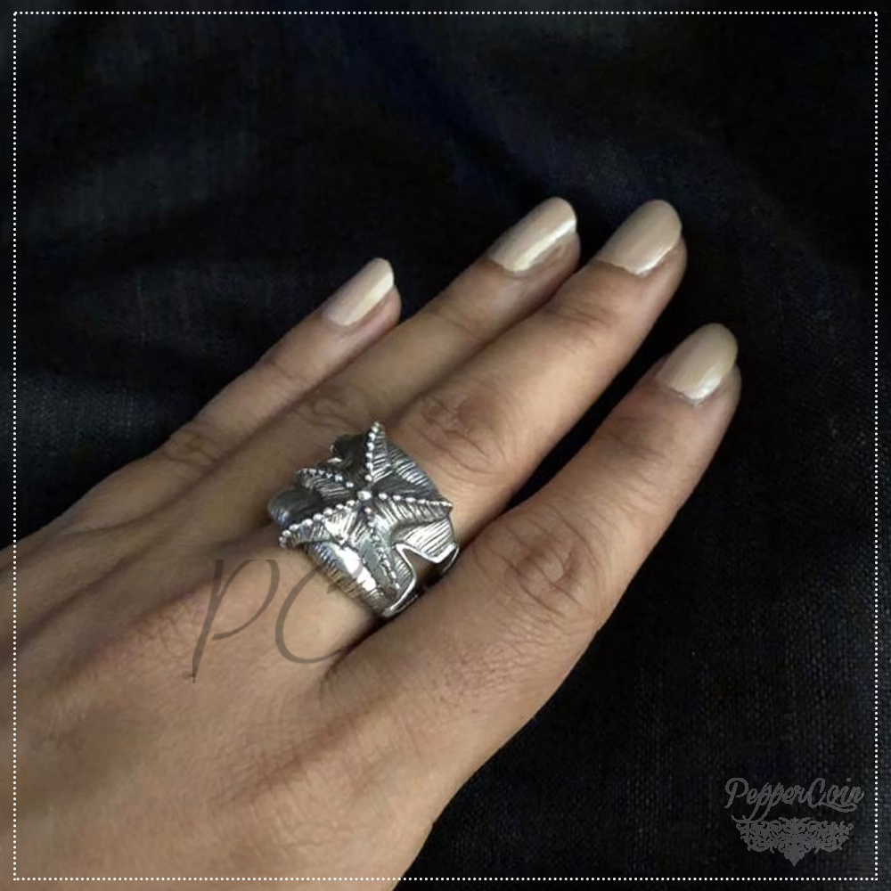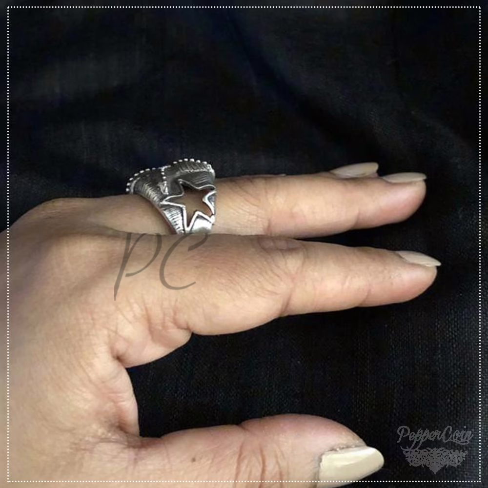 Silver ring with star motifs