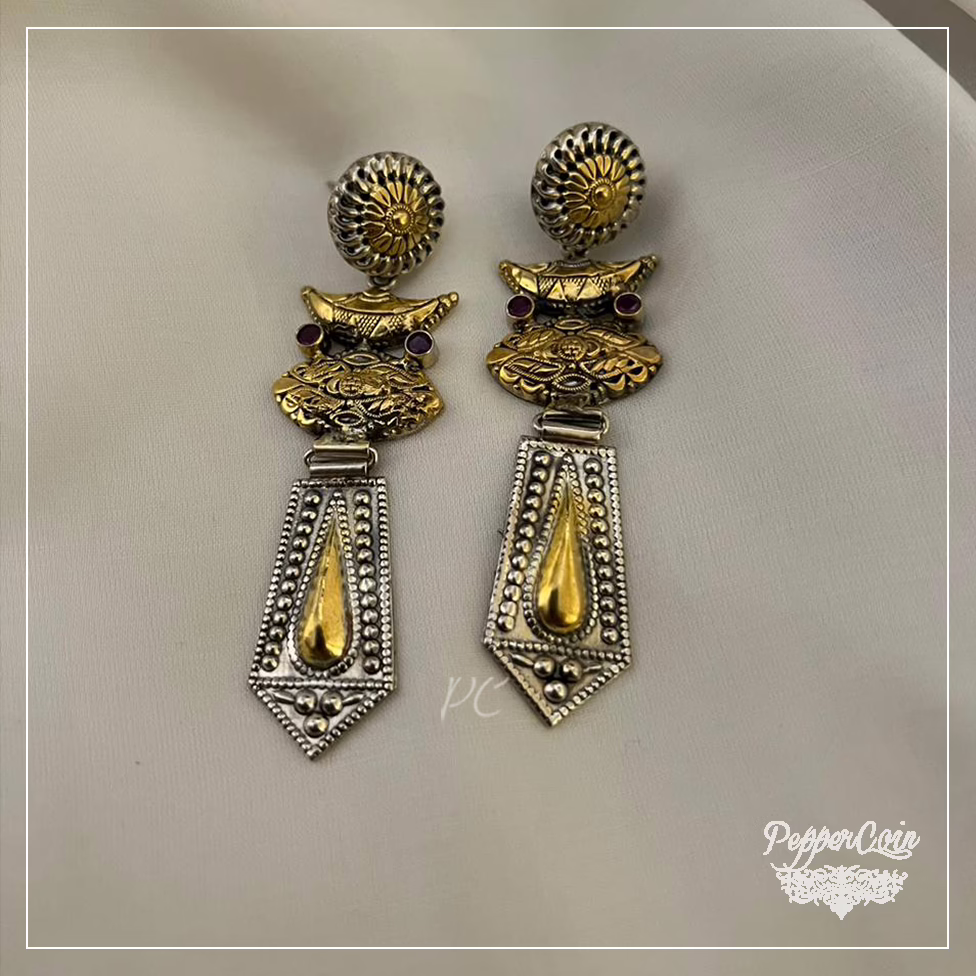 Dual Tone One Of a kind Silver Earrings Ruby Stone.