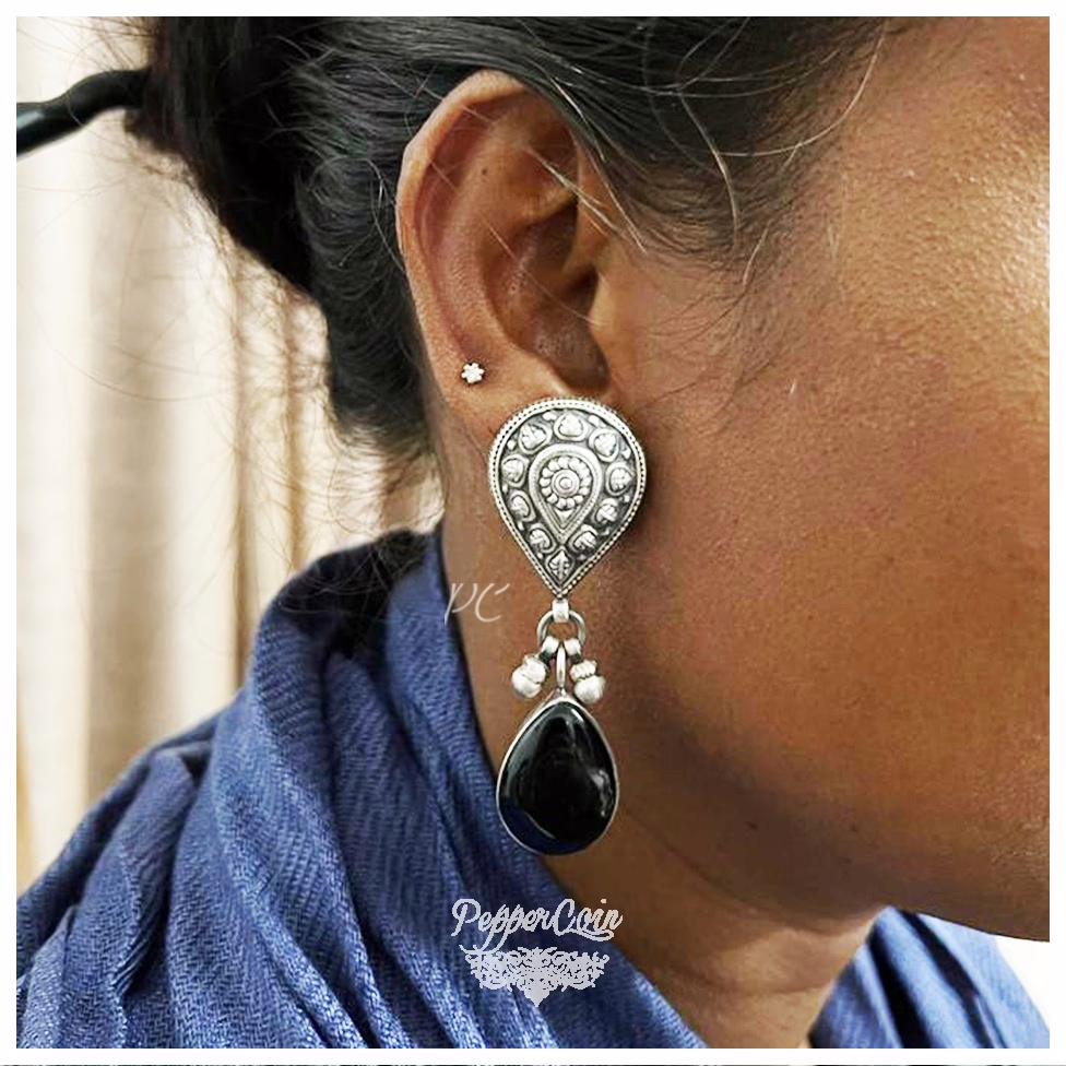One OF a kind silver earrings with black Onyx and Ghungroo.