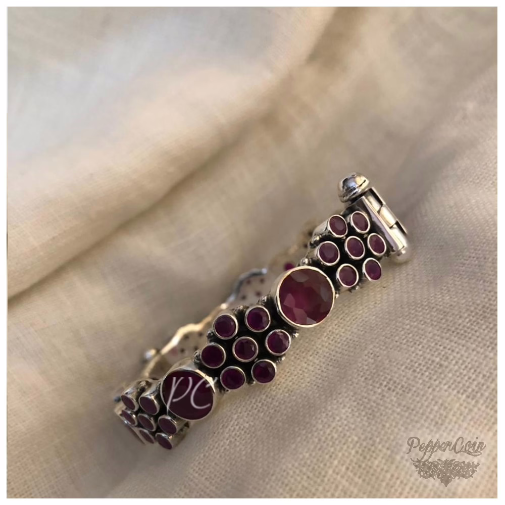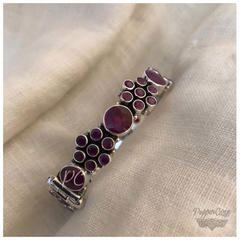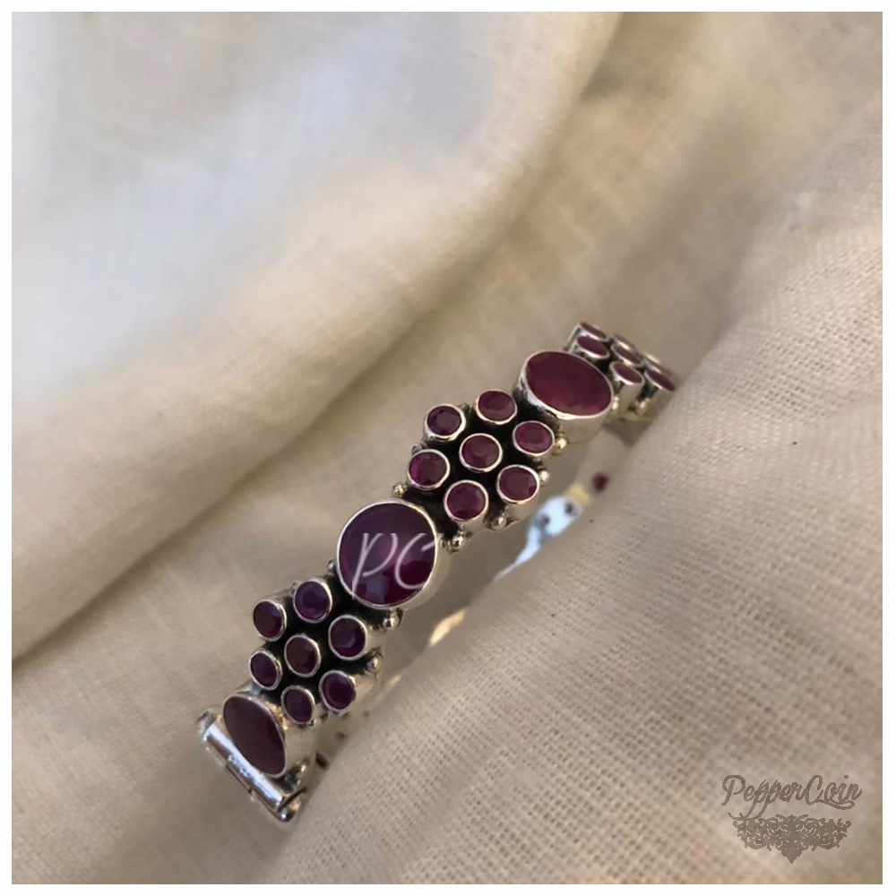 Ruby flower pattern silver bangle.