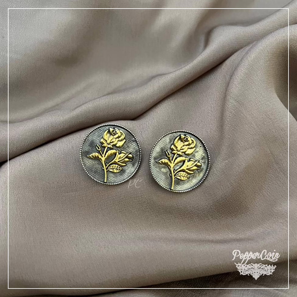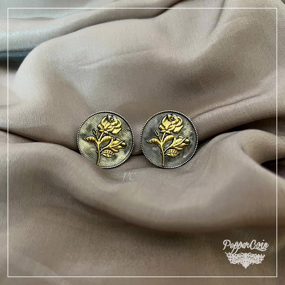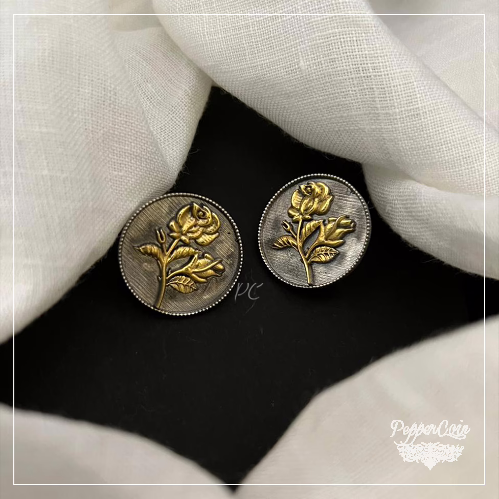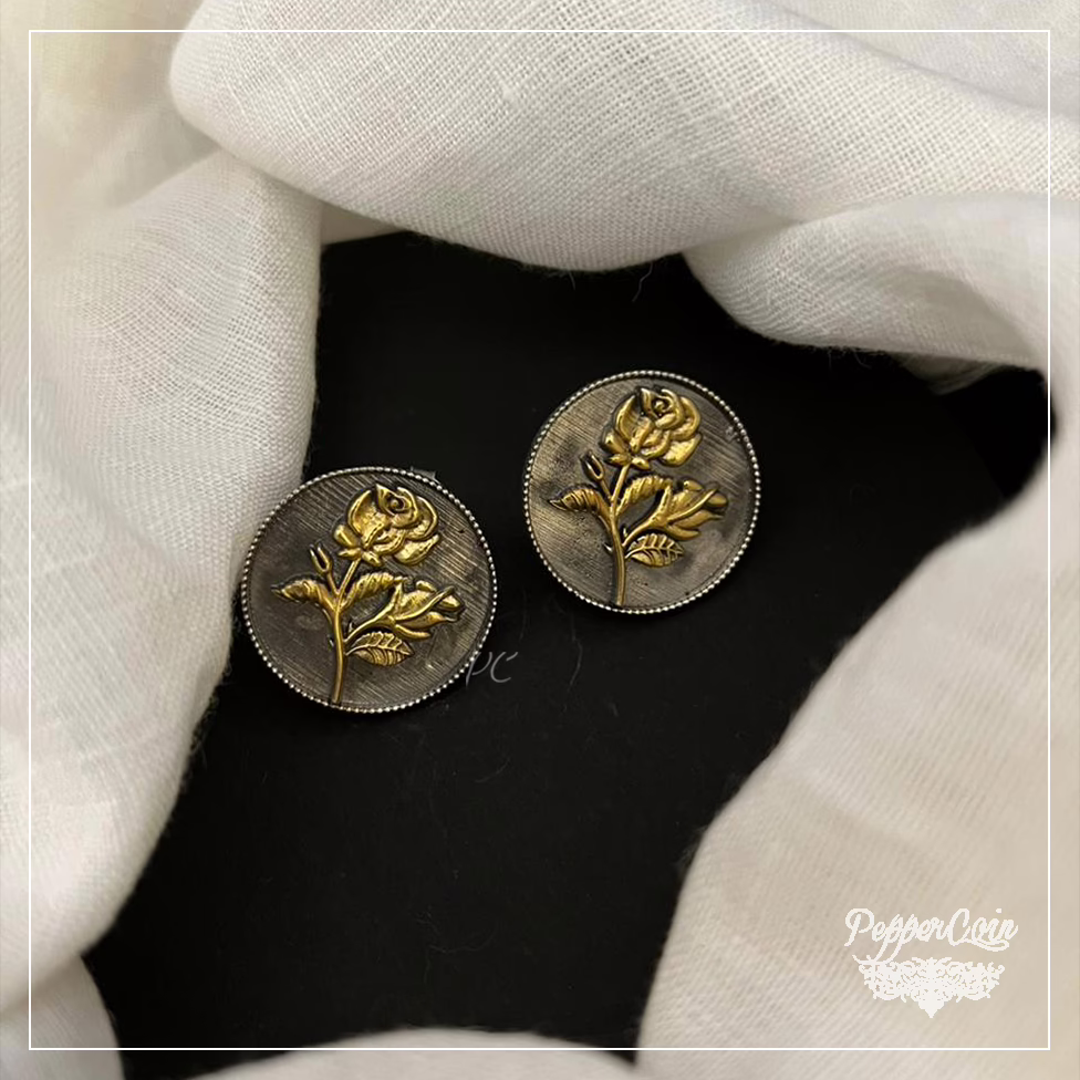 One Of a kind dual tone silver studs with beautiful floral carvings.