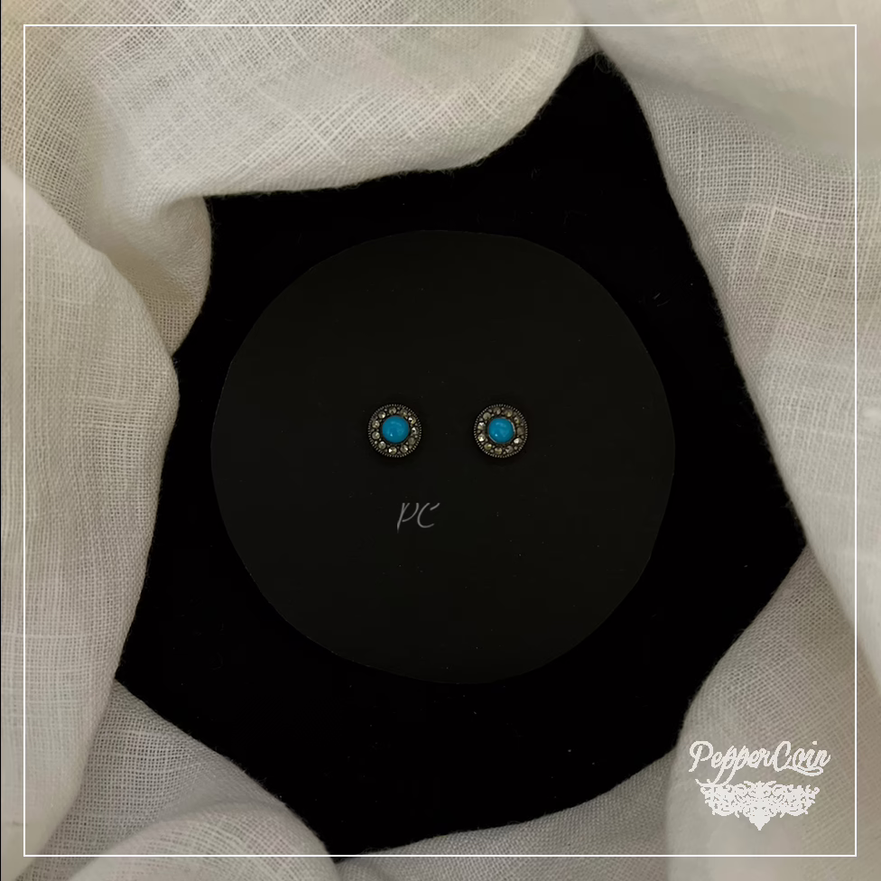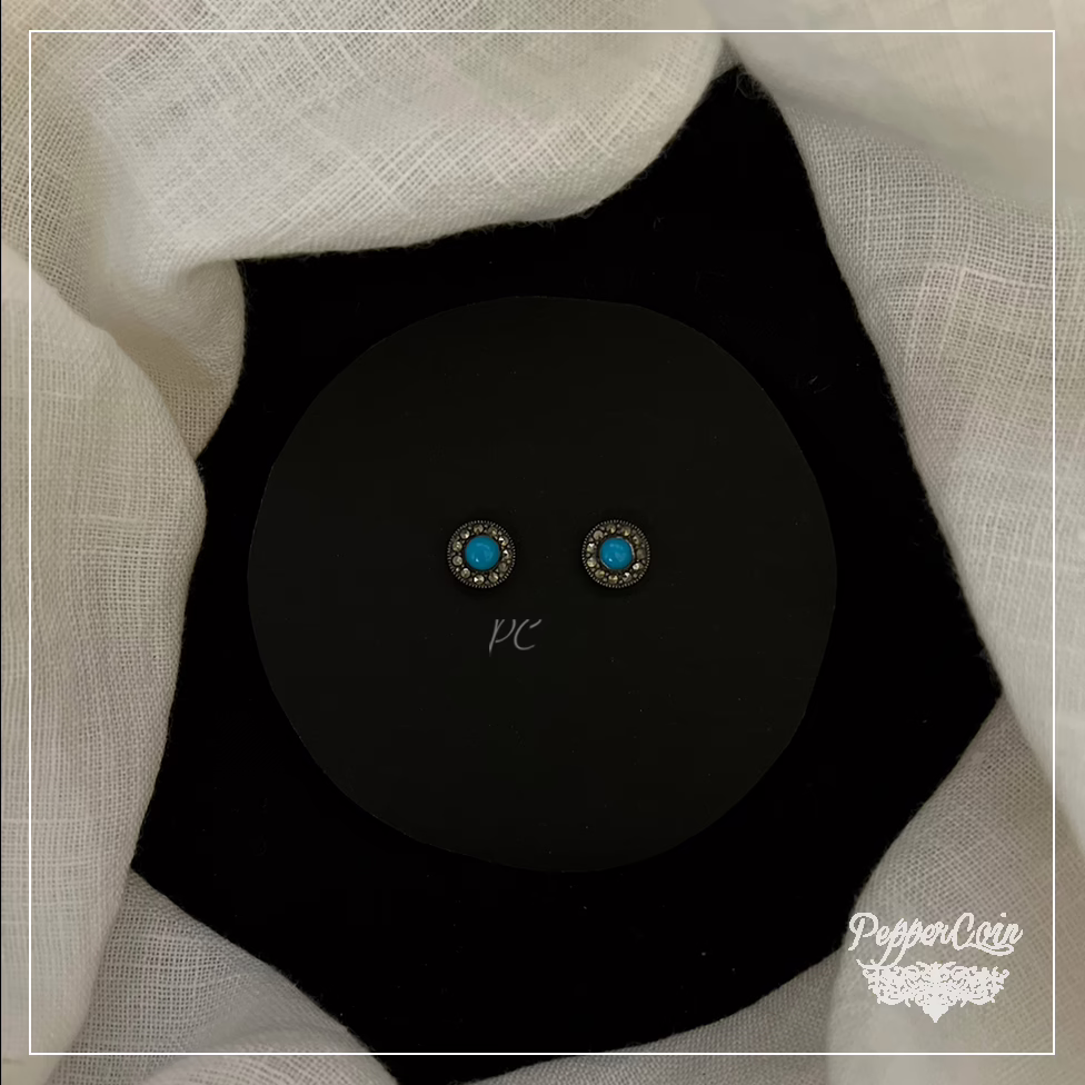 Turquoise marcasite studs handcrafted in silver.
